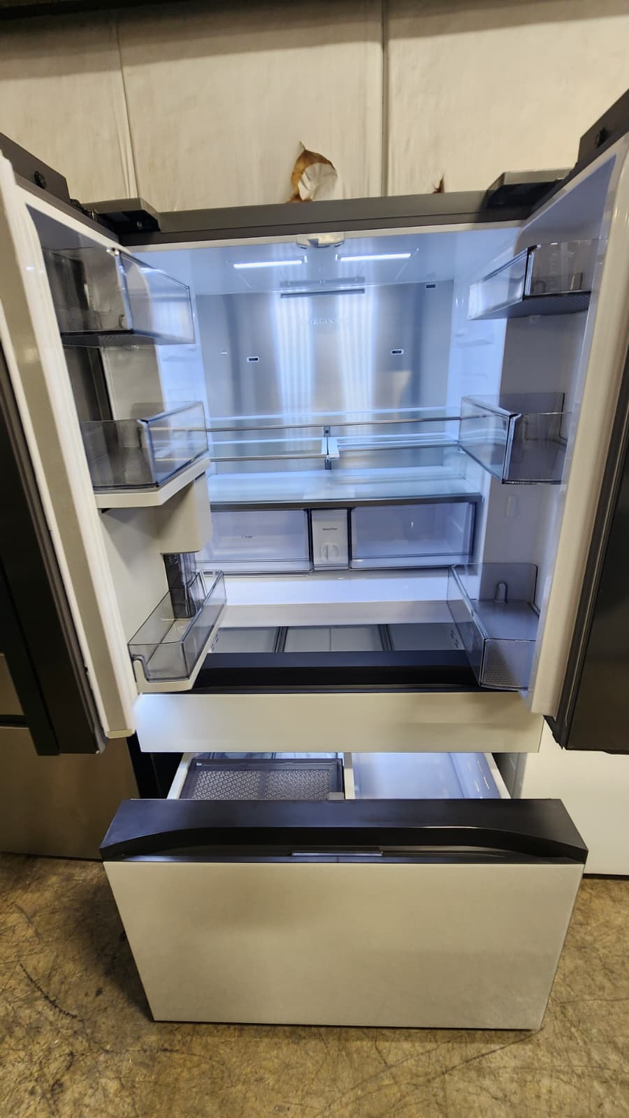 The Samsung RF23BB860012AA French Door Refrigerator blends smart technology, sleek design, and efficient cooling perfect for modern kitchens. With a 23 cu. ft. counter-depth capacity, it offers spacious storage while maintaining a built-in look that fits flush with cabinetry.
