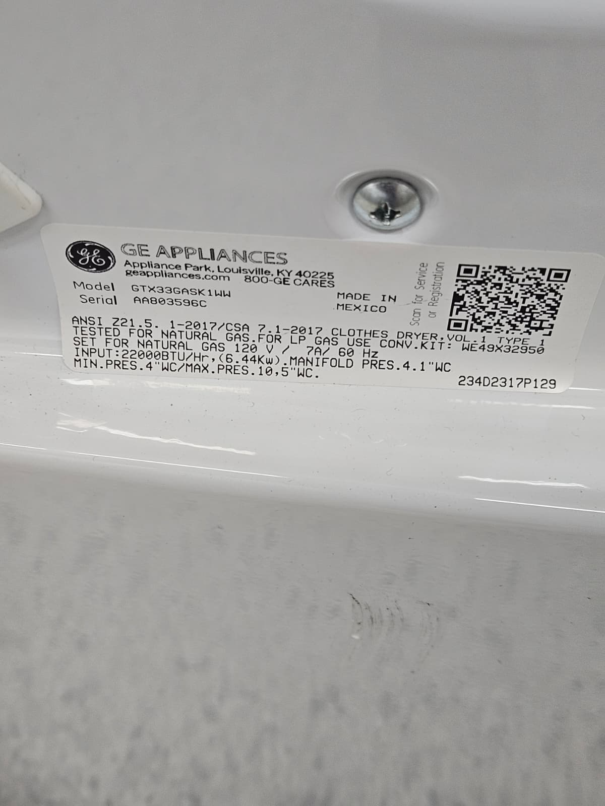 The GE GTX33EASKWW is a compact 6.2 cu. ft. electric dryer built for everyday convenience. It’s perfect for smaller households or limited laundry spaces.