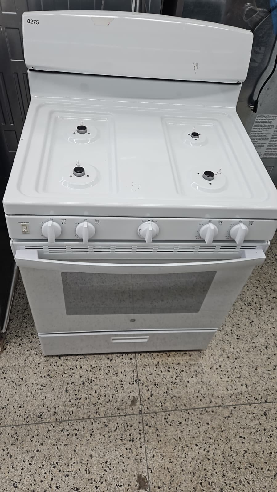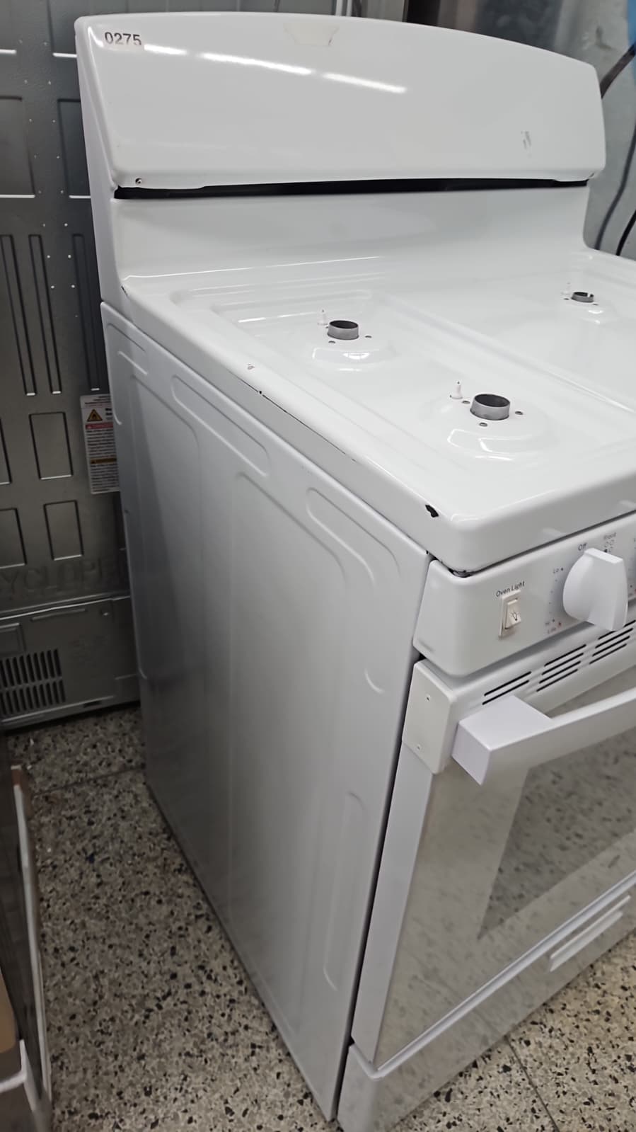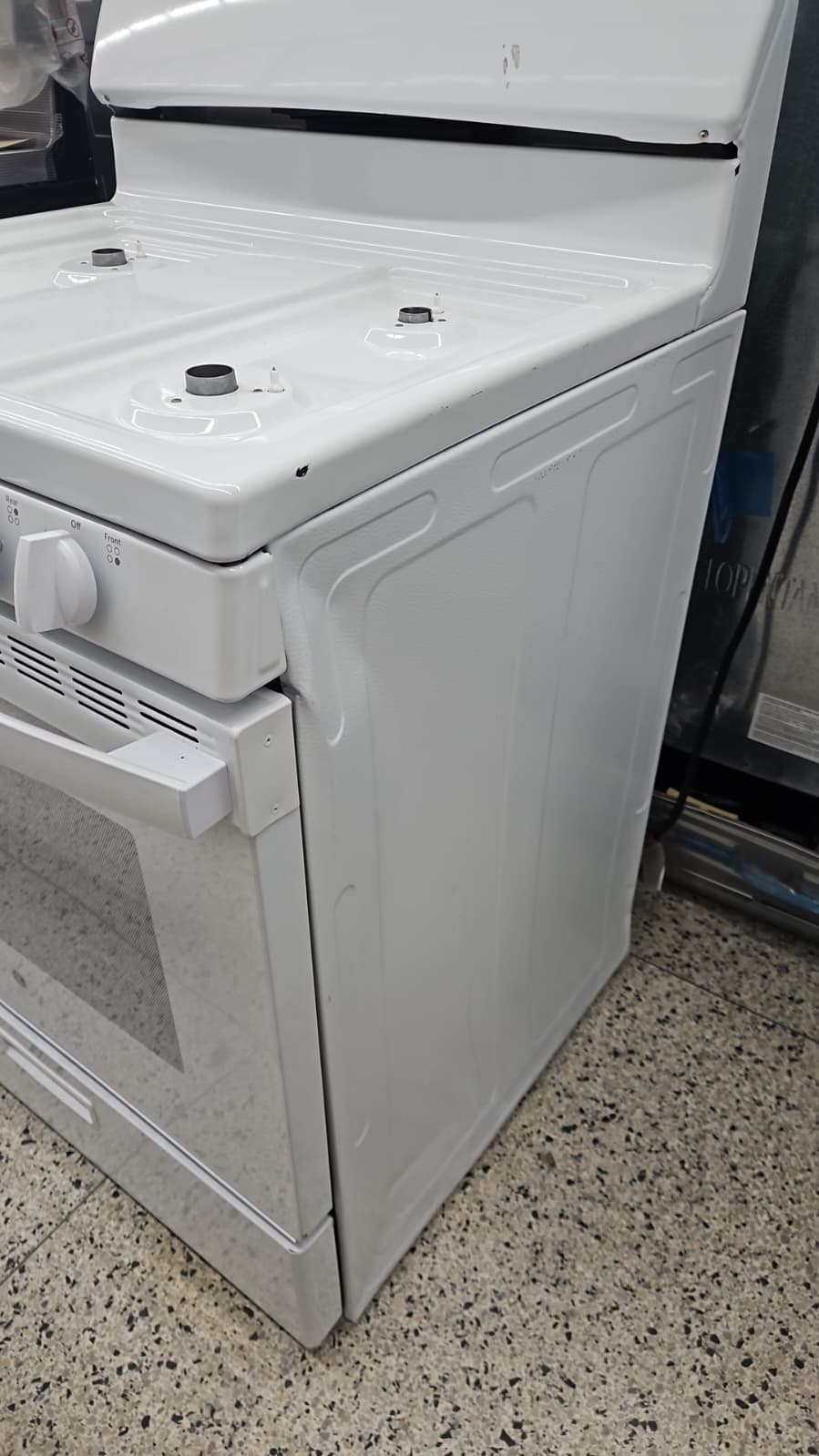 User‑friendly controls make operation simple, with clearly marked settings for oven and cooktop functions. The range’s durable construction ensures long‑lasting performance, while the smooth white finish adds a fresh, modern look to your kitchen.