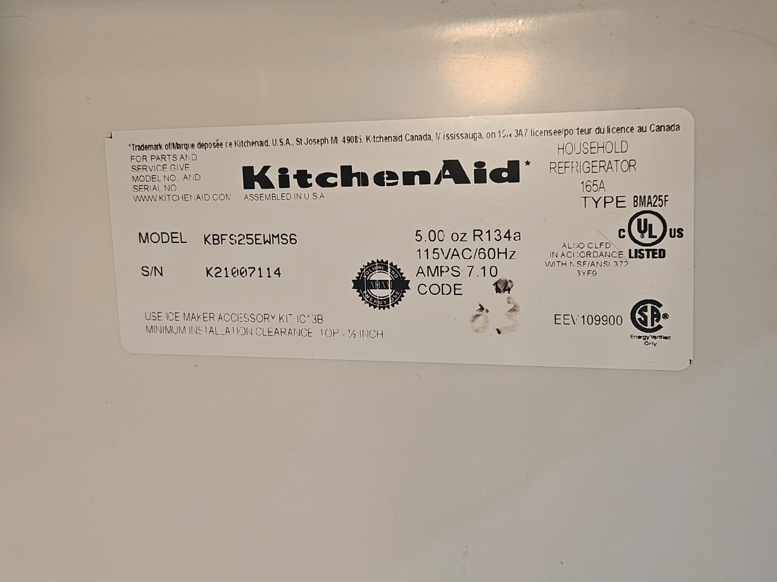 Built with KitchenAid’s reputation for durability and performance, this French door refrigerator delivers efficiency, style, and reliability in one appliance. Whether you’re preparing family meals or entertaining guests, the KBFS25EWMS ensures your food stays fresh and organized with ease.