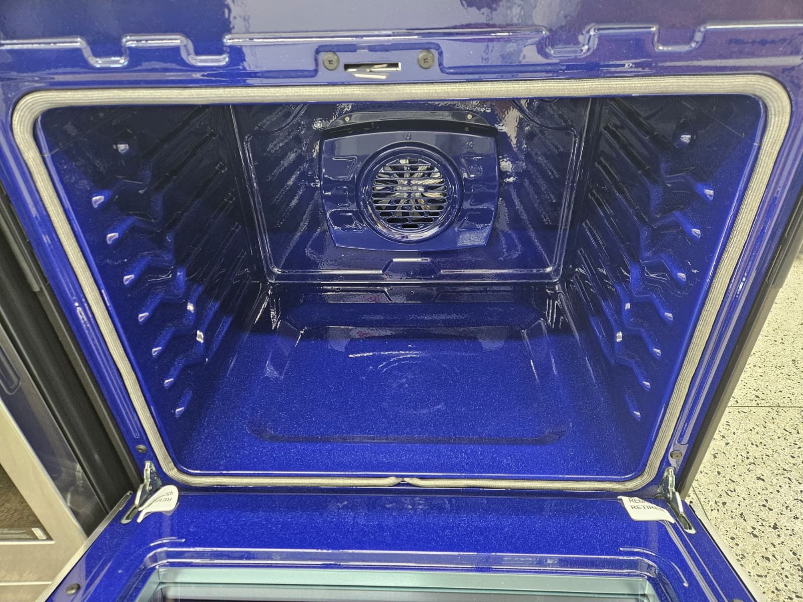 - Simply spray the oven interior with water, press the Easy-Clean button, and let the oven do the work in just 10 minutes without chemicals or high-heat. Then, easily wipe away the leftover residue.
